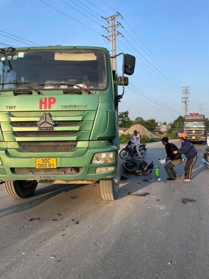 Vụ varcham xảy ra vào sáng sớm nay tại hiện trường xe máy vỡ nát phần đầu xe, người phụ nữ bị thương đã được đưa đi cấp cứu hiện chưa rõ tình trang ra sao